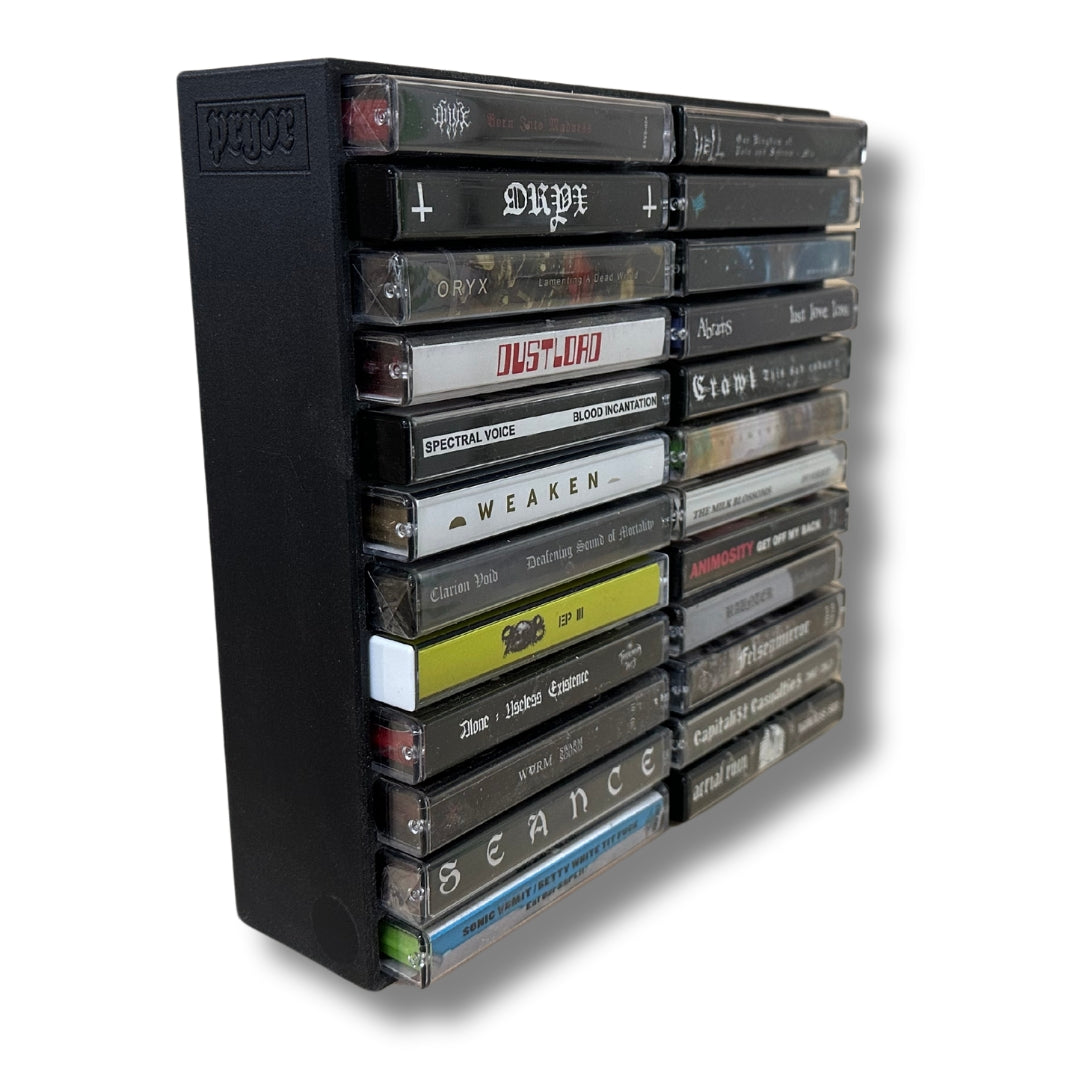 Organize and showcase your collection with our 24 Cassette Tape Rack. Made with 3d printing technology, this rack securely holds and displays up to 24 tapes. Keep your favorite music easily accessible and add a unique touch to your space.