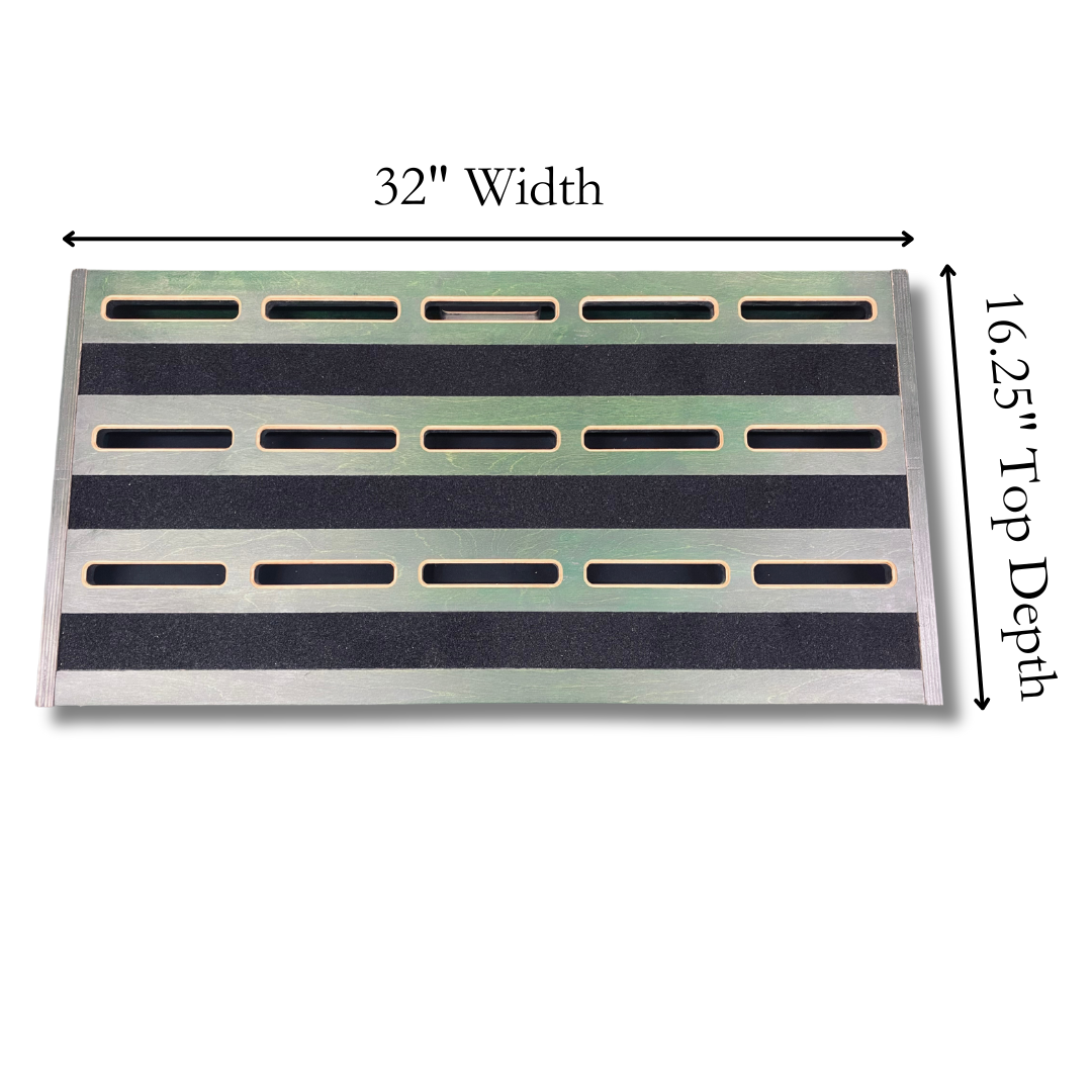 The Pedalboard PB-32 offers guitarists an efficient way to organize their rig. Its 32" wide and 16.5" deep baltic birch frame contains 3 rows of velcro-backed pedalboard space. An additional space beneath allows for mounting a power supply. Its rugged design allows for reliable performance in any music setting.
